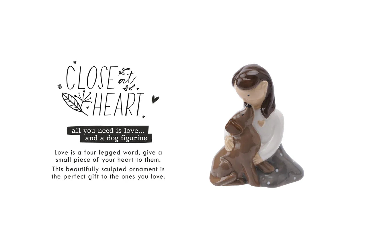 This charming Close at Heart dog figurine is a true delight for any dog lover. Made of high-quality ceramics, this figurine showcases a loving dog in a heartwarming hug, capturing the bond between a dog and its owner. Expertly crafted with attention to detail, it makes for a thoughtful and heartwarming gift.