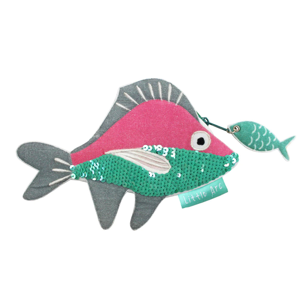 Super cute purse in the shape of a colourful fish and finished with bright green sequins and a mini fish zip pull. Perfect for keeping pocket money and other treasures safe!