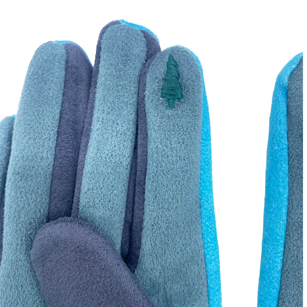 Take a stroll through the forest with the Moomin family! Follow Moominmamma, Moominpappa, Moomin, Snorkmaiden, and Little My as they stroll through a backdrop of turquoise trees, beautifully embroidered onto a wearable dark navy glove. These lovely gloves are a fresh take on our classic design, with new colours to take you through the season. They are super soft and the perfect gift for fans of Moomin!