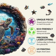 Discover the enchanting Sea Turtle Wooden Puzzle, where elegance meets eco-friendliness. Crafted from 150pcs of durable, eco-friendly plywood materials, this laser-cut masterpiece features smooth edges and every puzzle contains unique and unpredictable shapes.