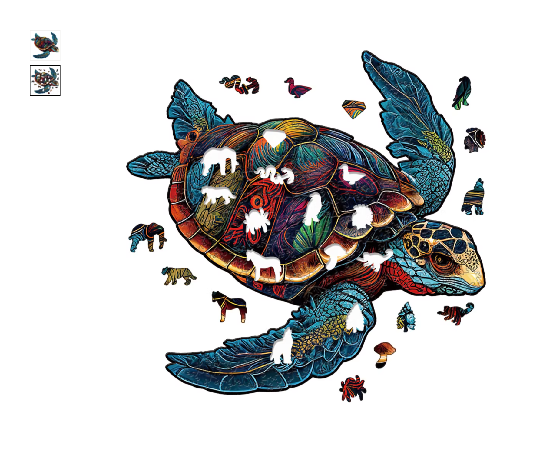 Discover the enchanting Sea Turtle Wooden Puzzle, where elegance meets eco-friendliness. Crafted from 300pcs of durable, eco-friendly plywood materials, this laser-cut masterpiece features smooth edges and every puzzle contains unique and unpredictable shapes.
