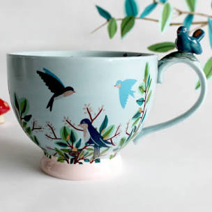 Features: A large teacup featuring a cute ceramic Bird perched on the handle. The exterior of the cup features a lovely foliage pattern with swooping swallows, finished with gold details for added luxury. The perfect gift for gardeners and nature lovers alike! Packaging: It is ready for gifting since it comes packaged in a beautifully printed box with gold details.