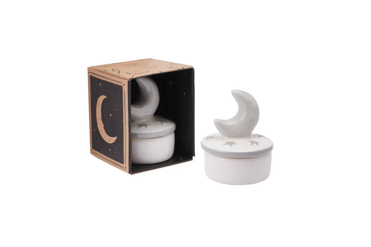 An Elegant Gift Boxed ceramic Moon and Stars Trinket Box from CGB Giftware.
