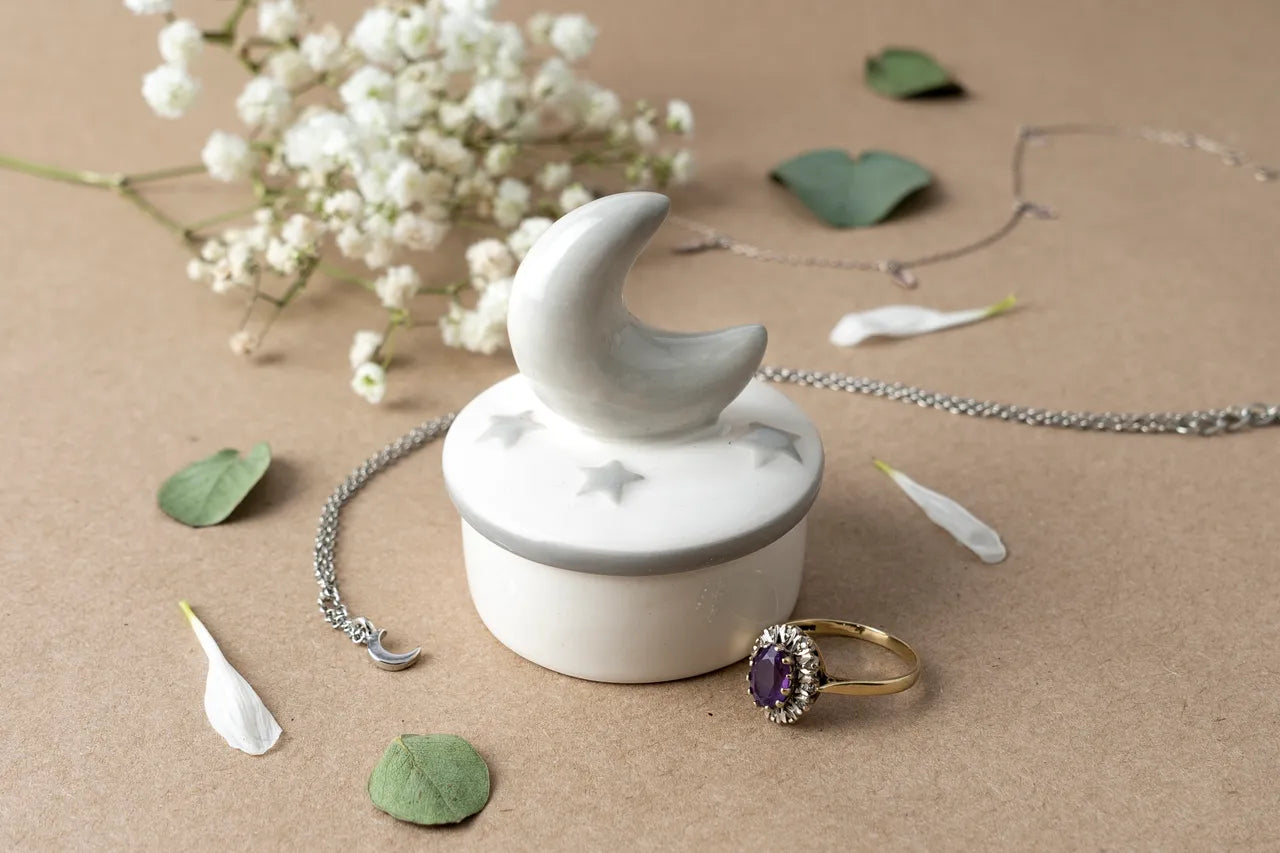 Send With Love Ceramic Moon And Stars Trinket Pot