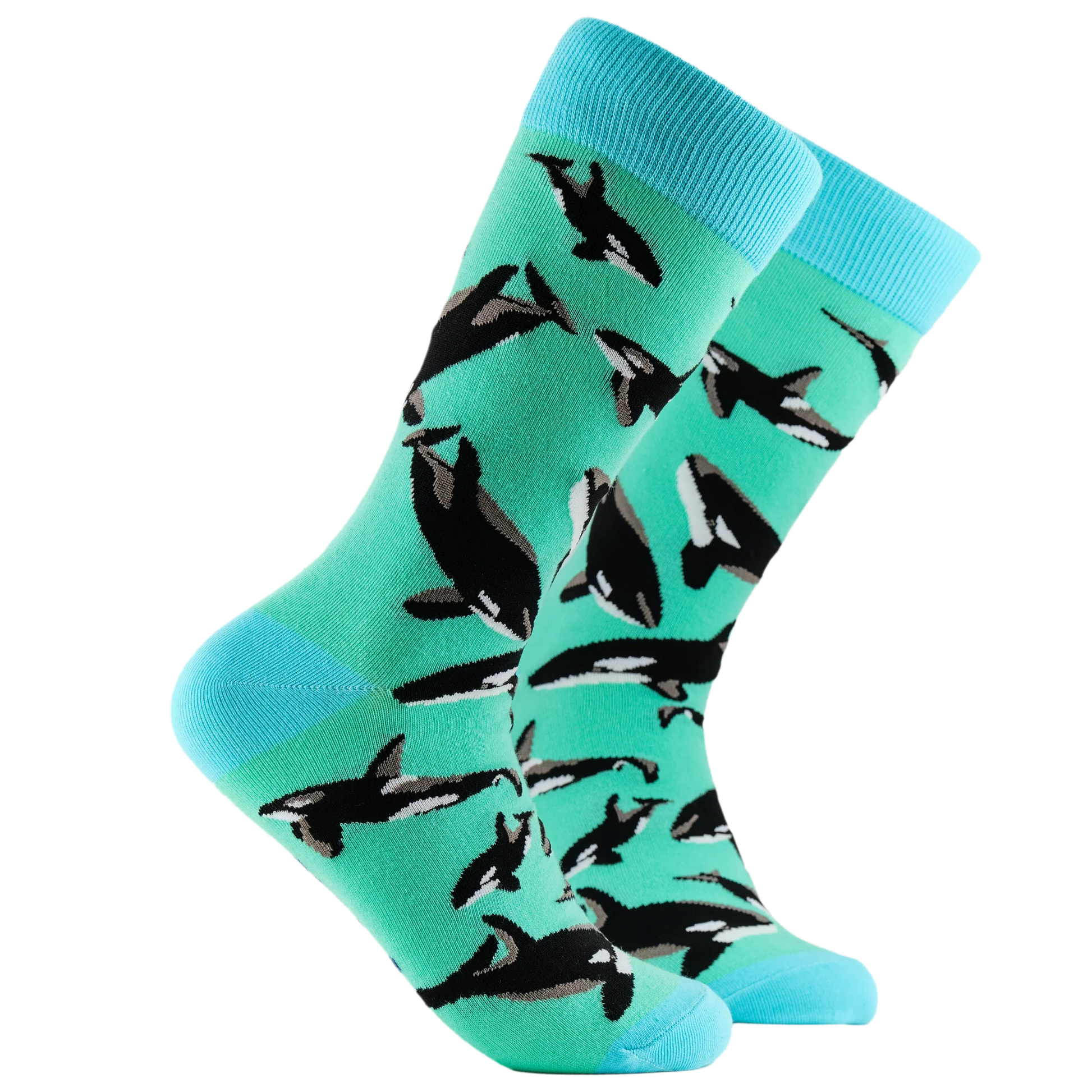 Perfect for any marine animal lover, these socks are a fun and unique addition to your wardrobe. Dive into a pod of fun with our Orca Pod Socks!